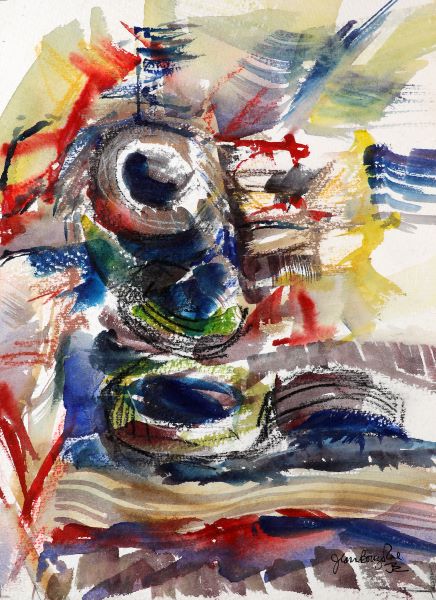 Trench T was really a delight with hearths, digger's grids, buckets and those 3 orthostats on the northern (left edge of painting) edge. I have been looking at those for the past few years and now at least another one is all wrapped up in plastic to protect the marks discovered on it.