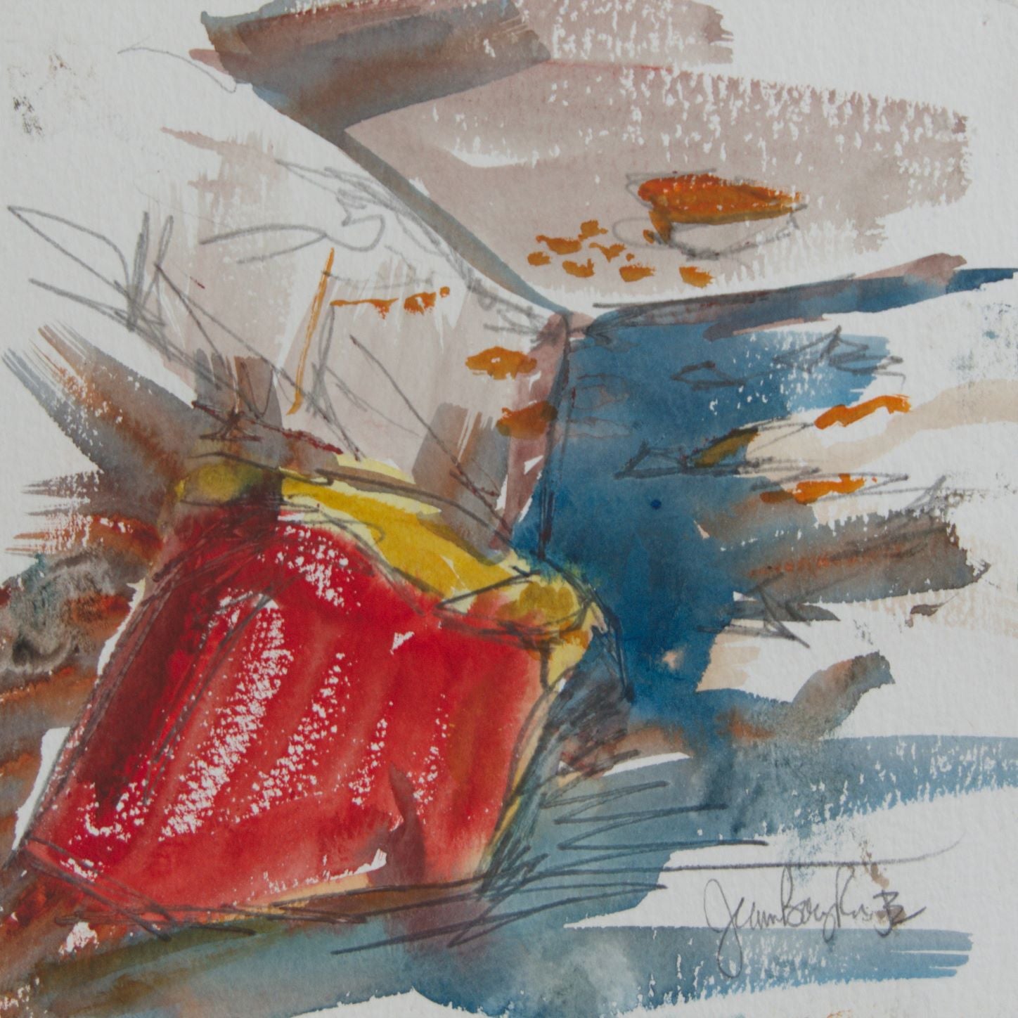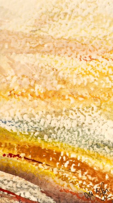 Small canvas and again, I zoom in on one area. This time, it is the space between the stones that look red and warm and wonderful.
