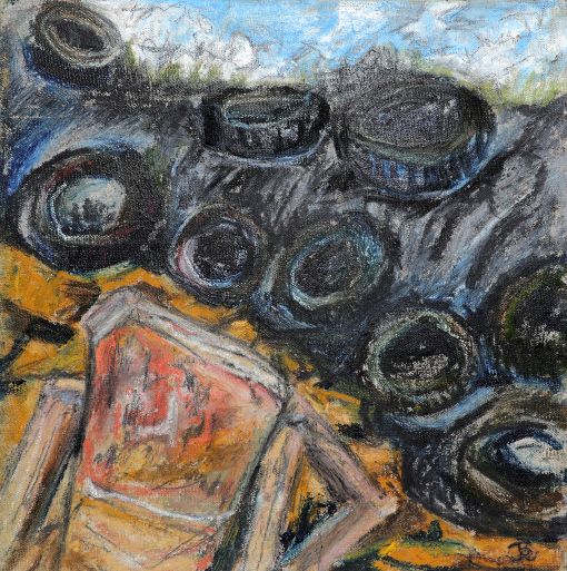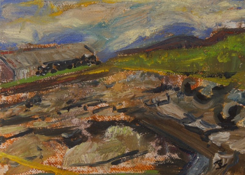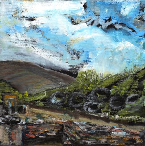 The site was closed in 2019 but Nick Card said I could go and paint. This was the first one in the small series. It was different not to see that field in front of the sheds beyond filled with the diggers' cars.