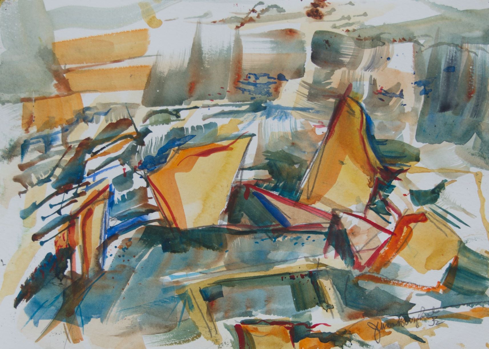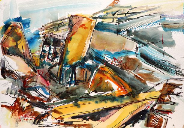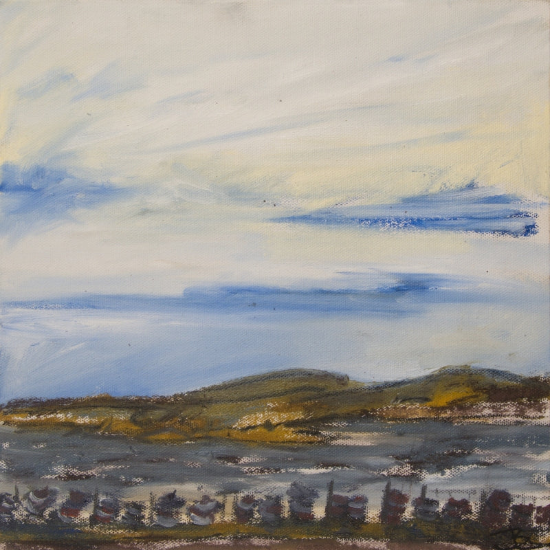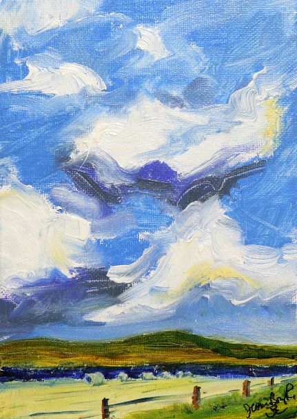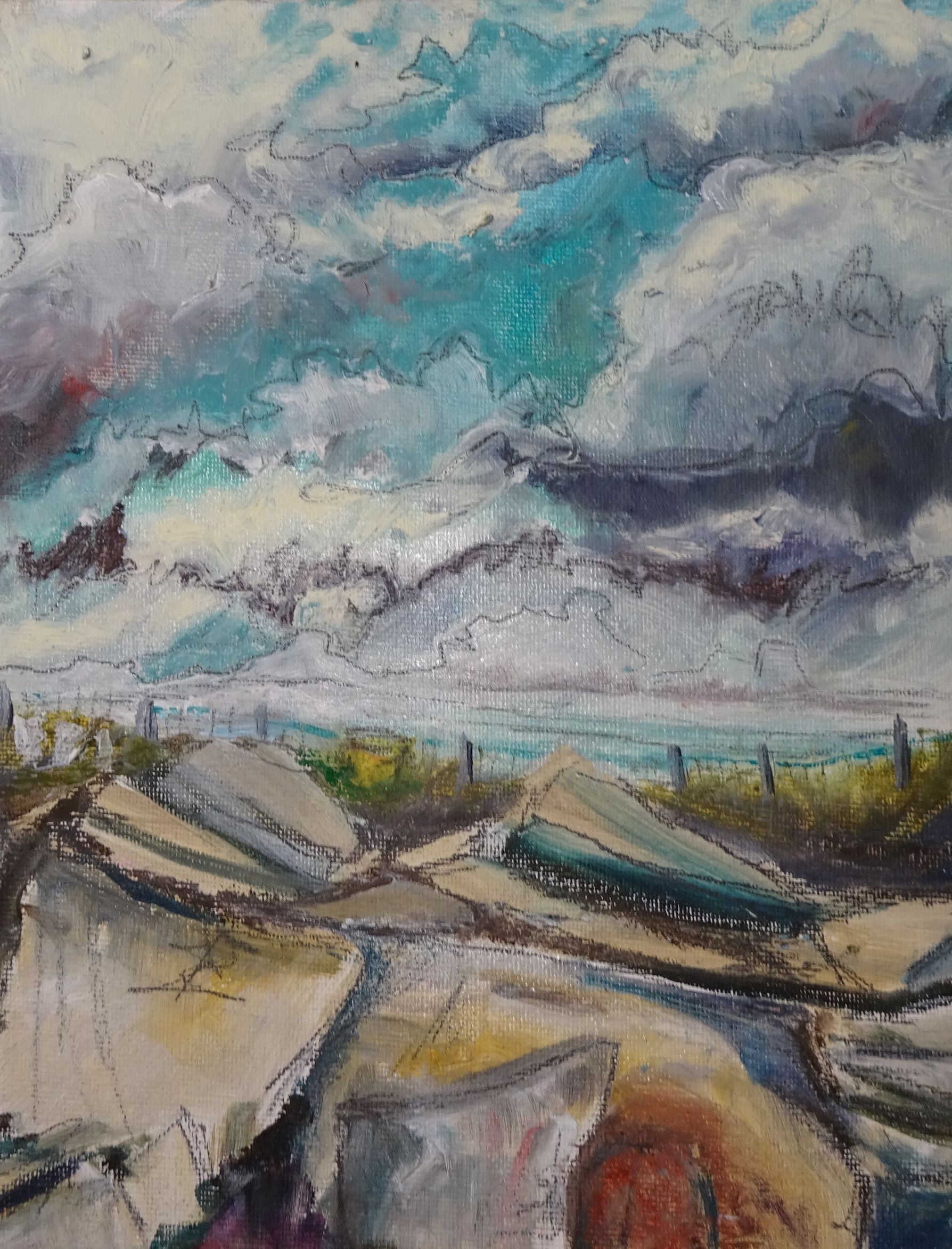 Another work painted when the sun was still high and the dig time was over for the day. What a sky!