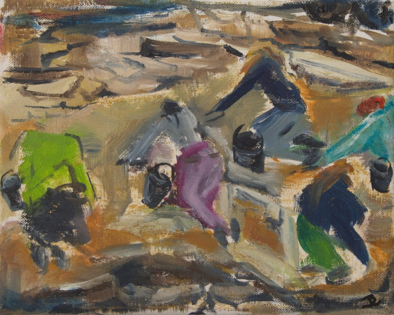 I also focused on oil works of the humans working on site. I was drawn to their coloured clothing and their bodies' shapes while working. These quick paintings have pleased the diggers and shares a moment of their actions. Often, I caught a bit of history in action.