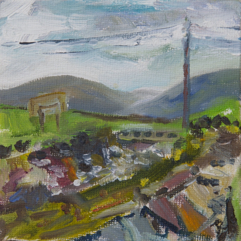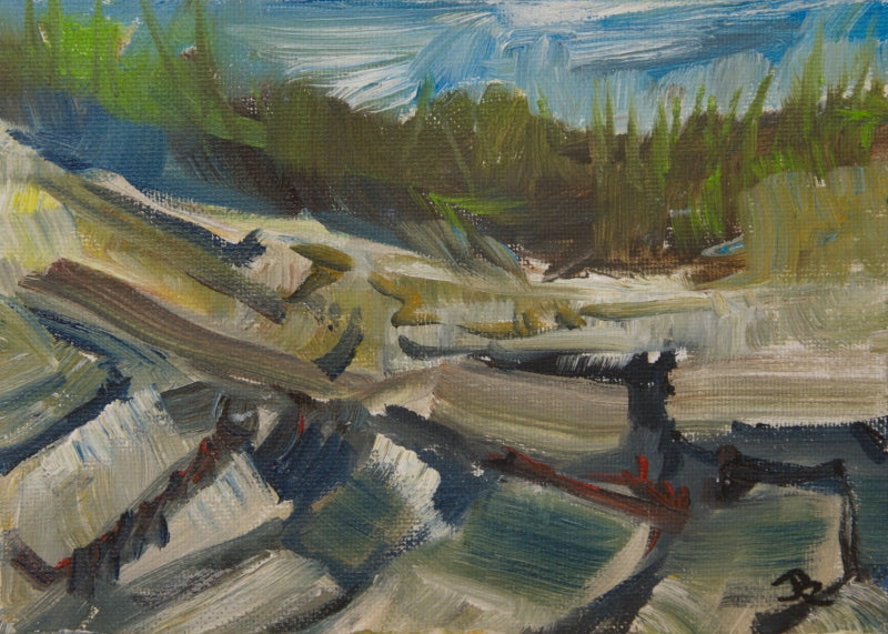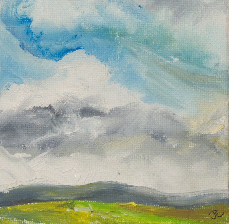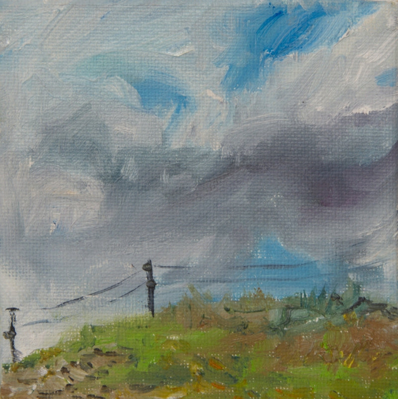 Numerous rainstorms justifies my consistent work in oil paint. My canvases continued to be small so that I could hold on to them in the winds.
