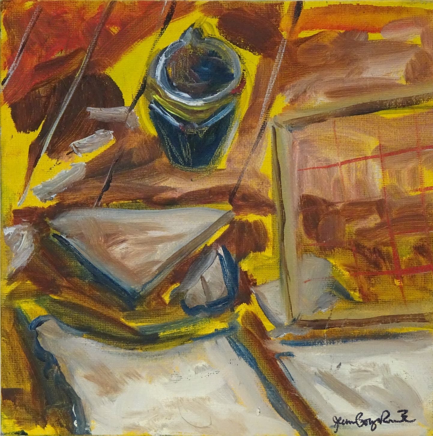 One of 2 INSIDE STRUCTURE 10 Original oil on canvas panel 4 x 4 in. Mounted and framed under glass. Finished size 16 x11