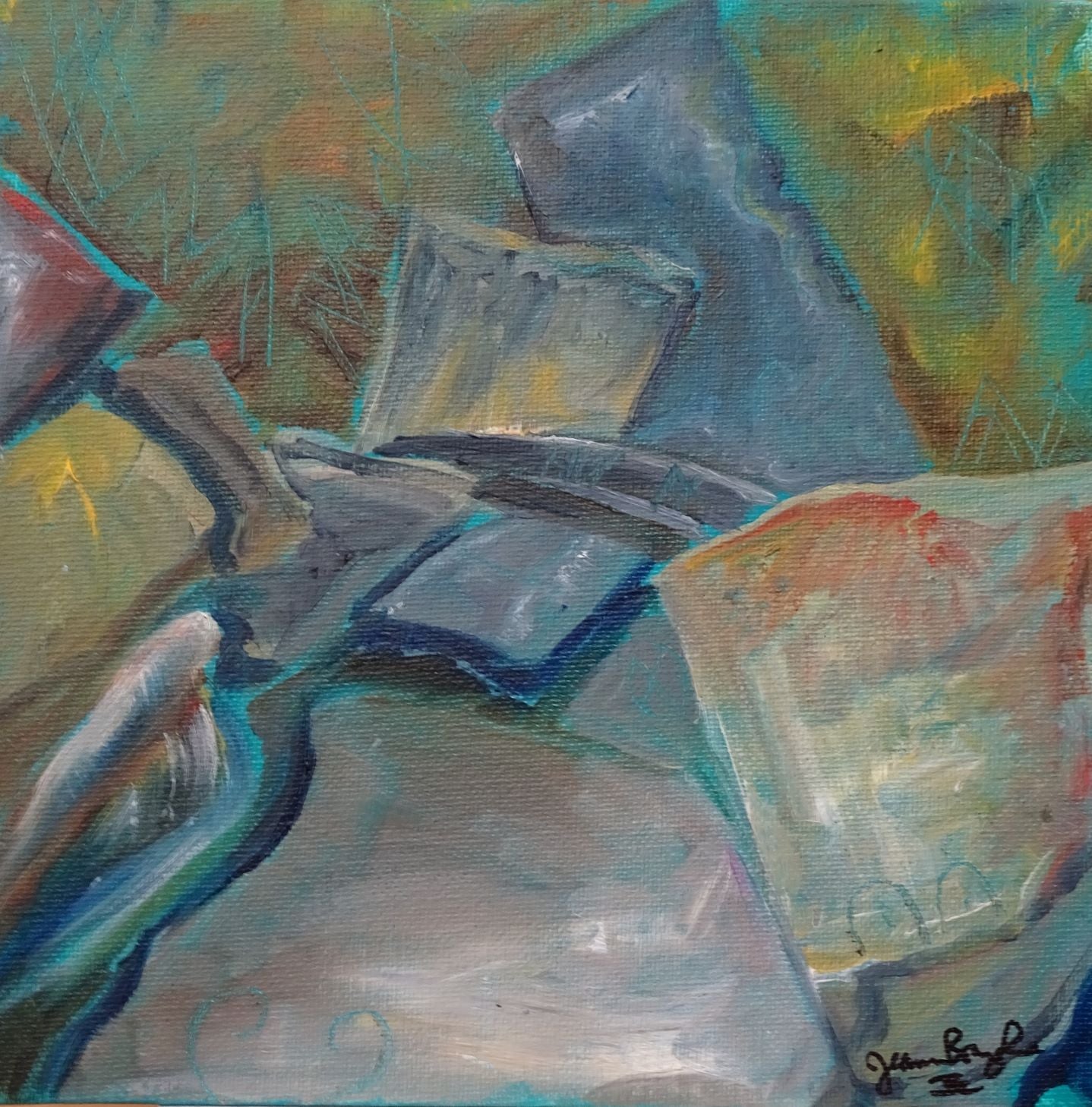 Another small canvas and I zoom into the in between spaces. There are small stones, colourful and filling. Filling the gaps.
