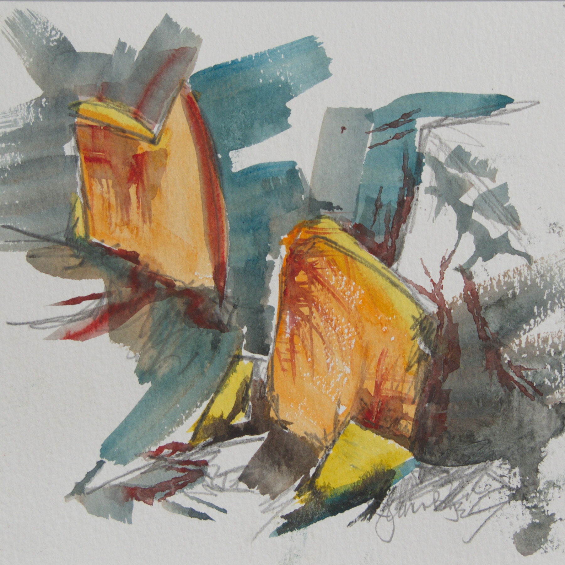 Watercolour painting outside is a fast job with the water drying swiftly. These are larger stones that I found outstanding in Trench T in the 2019 dig season.