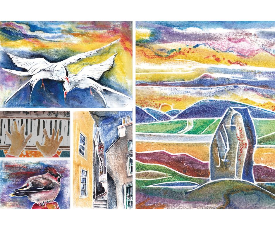 If you come to Orkney, find her work and studio shop in Stromness, or take her workshop at the Woodstock School of Art , New York. In addition to Orkney woodcuts, Jeanne paints watercolours and uses oil paintsticks for large oil paintings, which are featured in her gallery and in homes and institutions around the world.